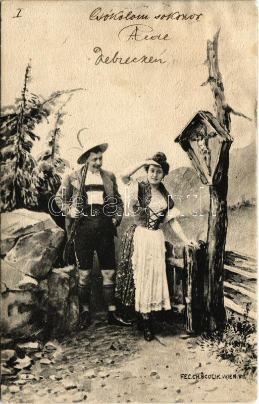 1901 Austrian folklore. Fec. Ch. Scolik, Wien (gyűrődés / crease)