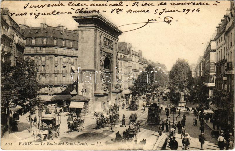 1914 Paris, Le Boulevard Saint-Denis / street view, gate (EB)