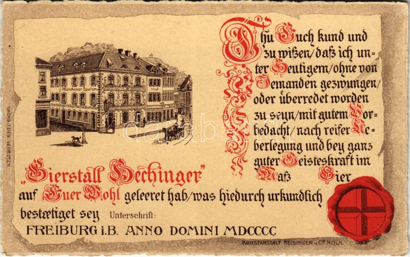 Freiburg, Bierstall Bechinger / beer hall, inn advertisement. Kunstans...