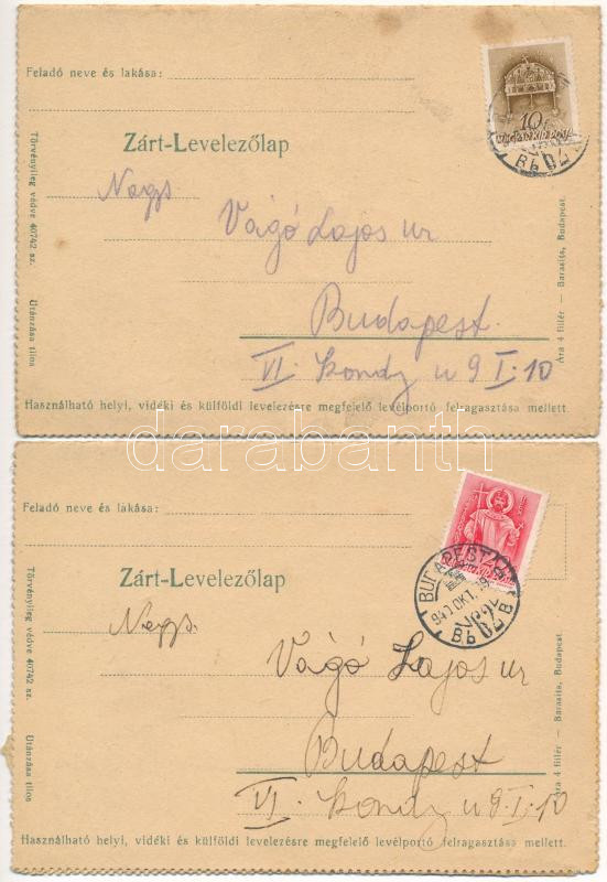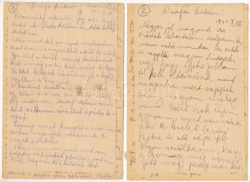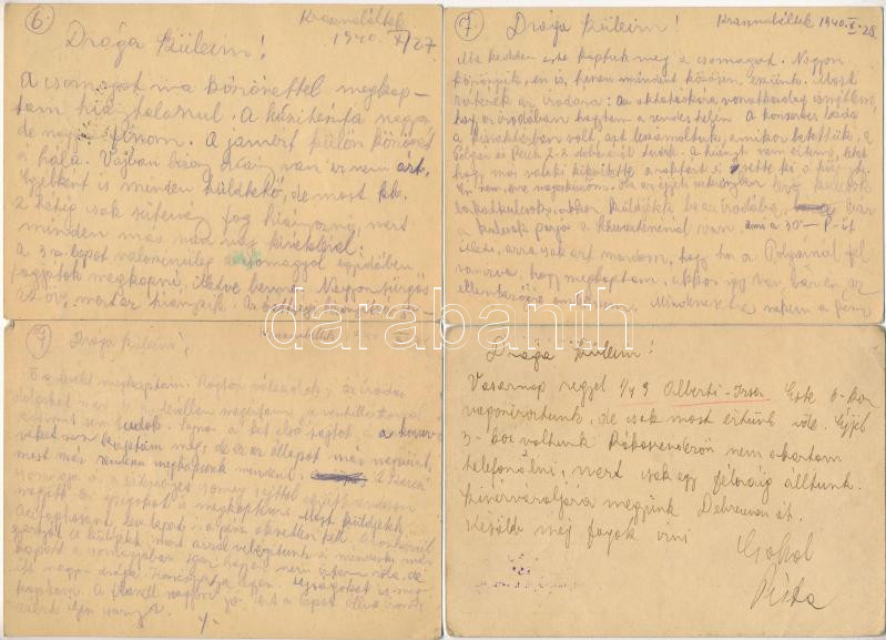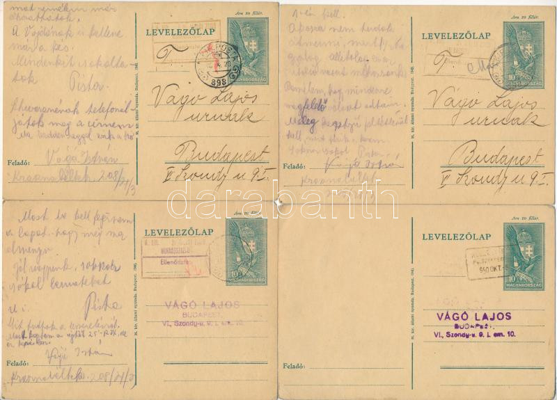 6 db magyar második világháborús zsidó KMSZ (közérdekű munkaszolgálatos) tábori posta a 208/21/3. krasznabélteki tábori munkás század munkatáborból Vágó István és a családja között 1940-ből. Judaika / 6 WWII Hungarian letters between a Jewish labor serviceman and his family from 1940 from Beltiug. Judaica