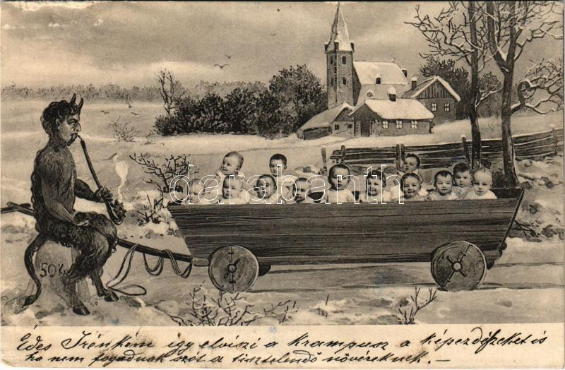 Krampusz és baba szekér / Krampus with cart full of babies. B.K.W.I. N...