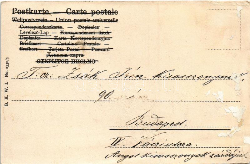 Krampusz és baba szekér / Krampus with cart full of babies. B.K.W.I. No. 2530/5. (Rb)