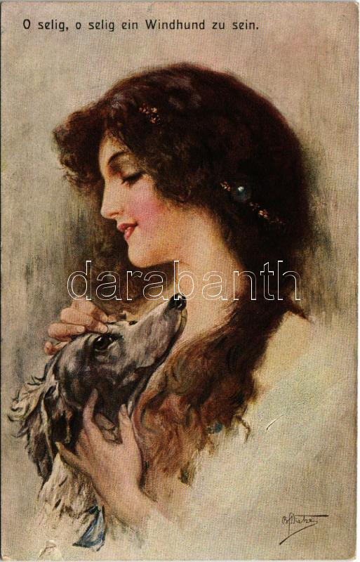 1917 O selig, o selig ein Windhund zu sein. "Treue Freunde" Serie 6026. / Lady art postcard with dog s: Dietze (szakadás / tear)