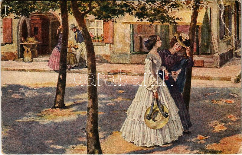 Kleinstadtpromenade / Lady art postcard. Verlag v. E. A. Seemann Nr. 196. s: C. Voß (EB)