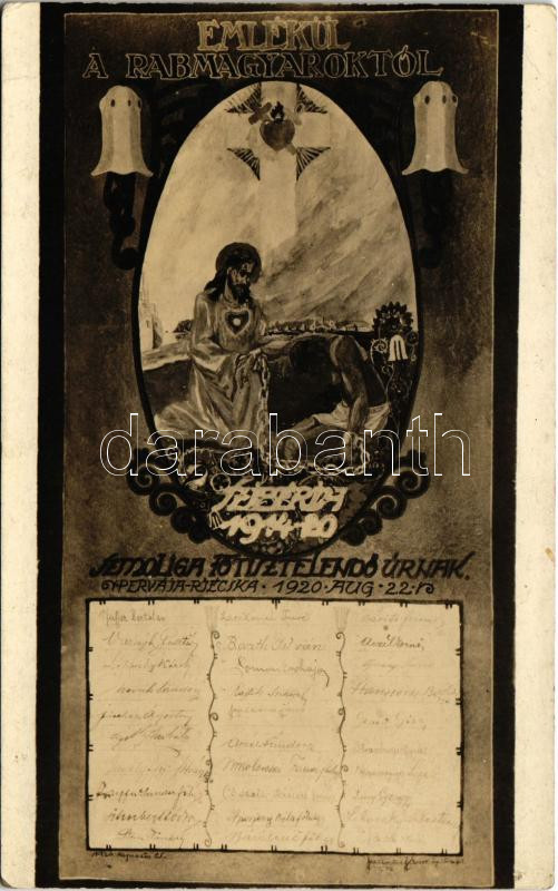 1914-20 Szibéria, Emlékül a rabmagyaroktól Szmoliga főtisztelendő úrnak. Pervája-Rjécska 1920 Aug. 22. s: Szalkovics János (?)