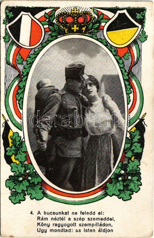 1916 A búcsúnkat ne feledd el... / WWI Austro-Hungarian K.u.K. military art postcard, soldier's farewell. MBL 1596. Art Nouveau, floral (EK)