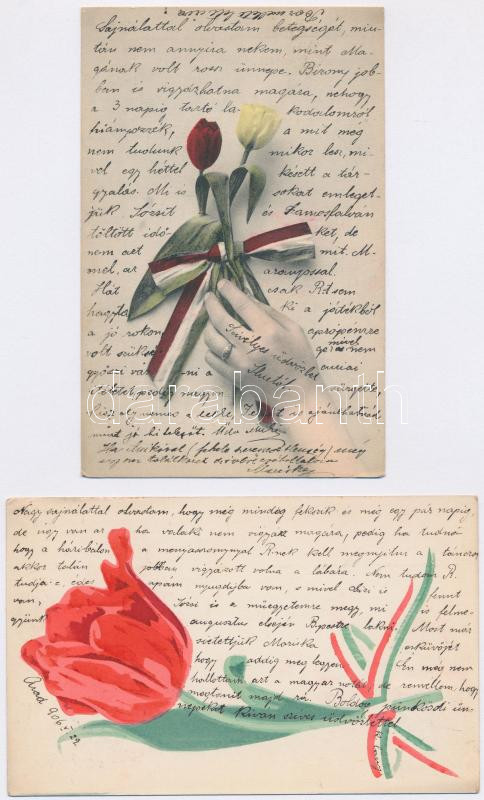 2 db RÉGI motívum képeslap: magyar hazafias lapok tulipánnal / 2 pre-1...