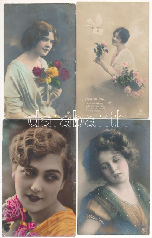 21 db RÉGI zsáner motívum képeslap vegyes minőségben: hölgyek / 21 pre...