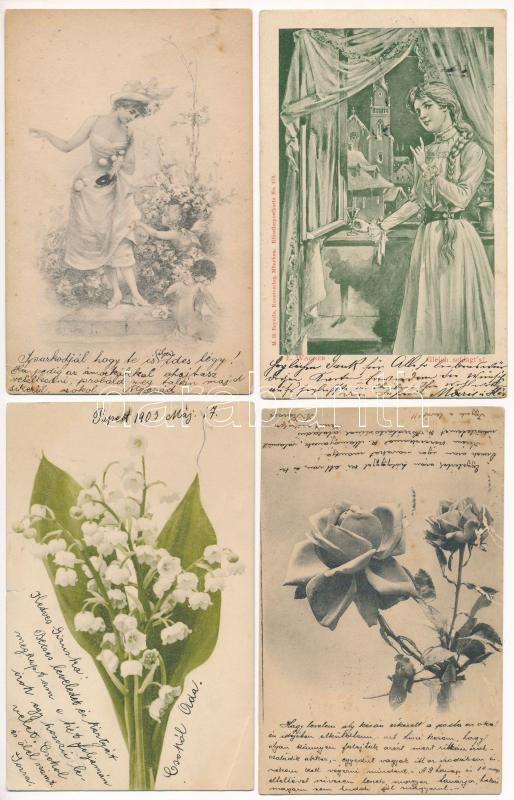 4 db RÉGI hosszú címzéses üdvözlő motívum képeslap / 4 pre-1910 greeting motive postcards