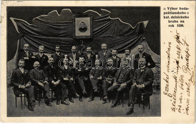 Description: 1908 Vybor budapestianskeho kat. delníckeho kruhu na rok 1908. / Budapesti Katolikus Munkáskör Bizottsága / Committee of the Budapest Catholic Worker's Circle