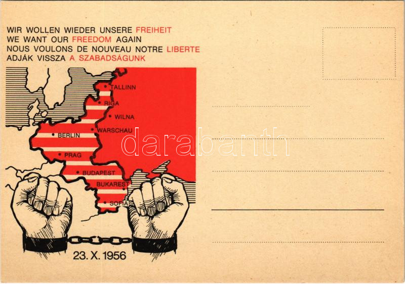 1956 X. 23. Wir wollen wieder unsere Freiheit! / 1956-os forradalom sz... https://www.darabanth.com/en/429-Online-auction/429.0/Postcards/Propaganda-politics~1500091/1956-X-23-Wir-wollen-wieder-unsere-Freiheit-1956-os-forradalom-szovjetellenes-propagandalapja-~II2748558