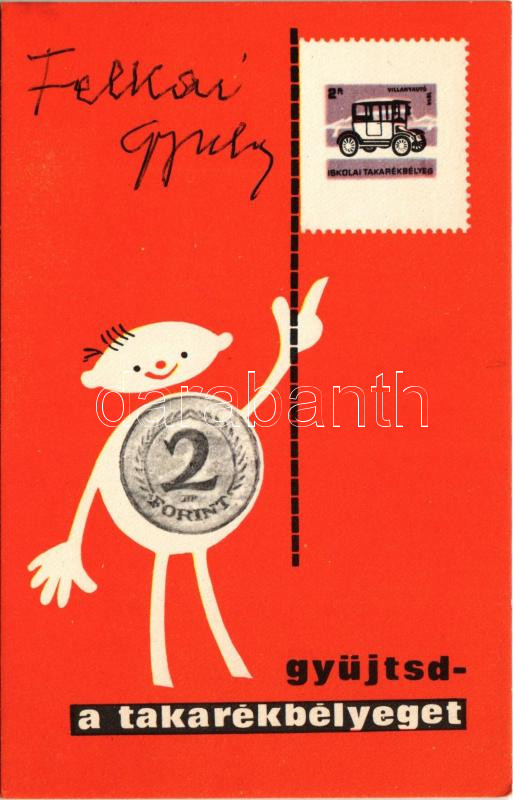 Gyűjts takarékbélyeget. Szocialista propaganda. Képzőművészeti Alap Kiadóvállalat / Hungarian socialist propaganda