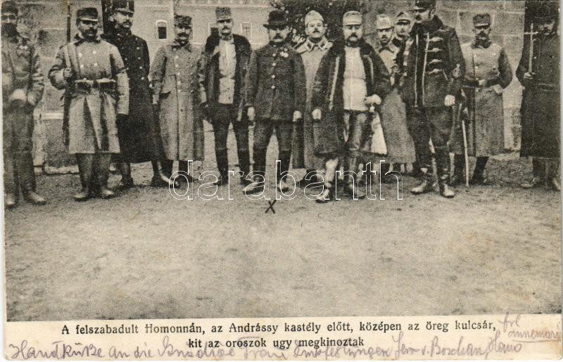 1915 Homonna, Homenau, Humenné; A felszabadult város az Andrássy kasté... https://www.darabanth.com/en/429-Online-auction/429.0/Postcards/Slovakia~1500007/1915-Homonna-Homenau-Humenne-A-felszabadult-varos-az-Andrassy-kastely-elott-kozepen-az-o~II2754626