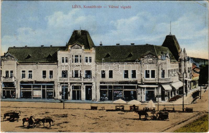 1917 Léva, Levice; Kossuth tér, Városi vigadó, üres piac, Kertész Lajo...