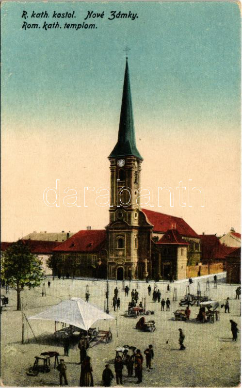Érsekújvár, Nové Zámky; R. kath. kostol / Római katolikus templom, piac / Catholic church, market