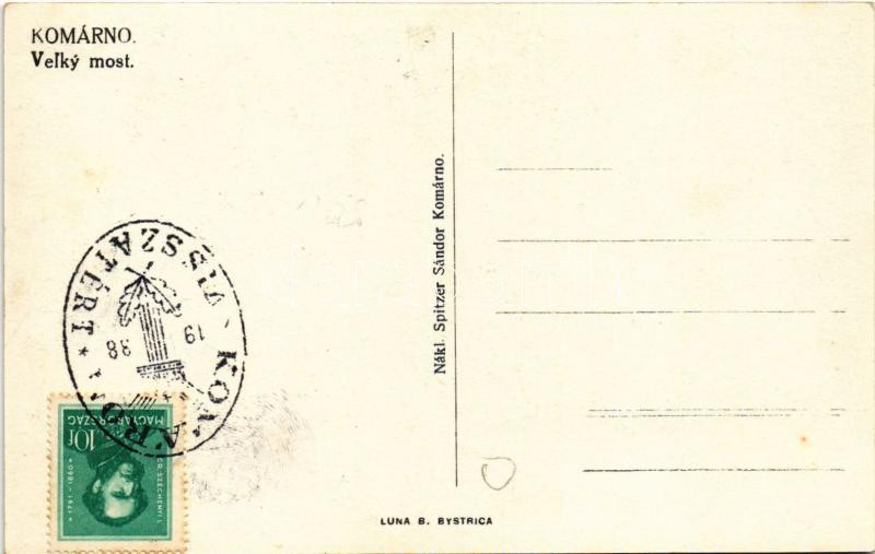 Komárom, Komárnó; Nagy híd / velky most / bridge + "1938 Komárom visszatért" So. Stpl