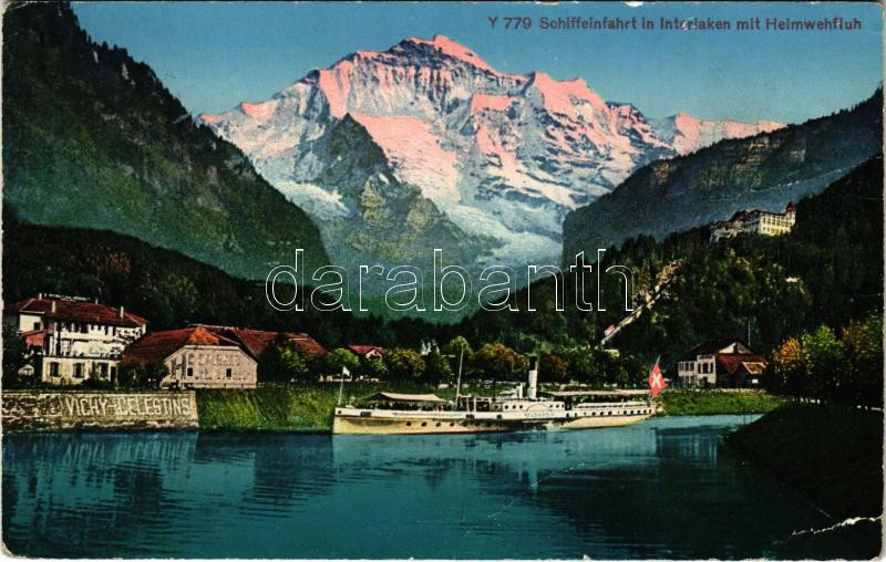 1926 Interlaken, Schiffeinfahrt mit Heimwehfluh / steamship (fa)