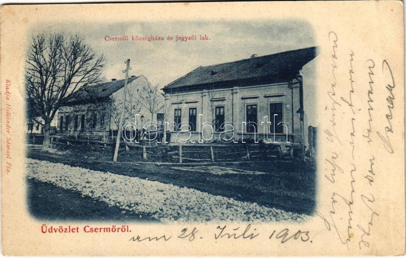 1903 Csermő, Cermei; Községháza és jegyzői lak. Holländer Sámuel kiadása / town hall, notary's office (EB)