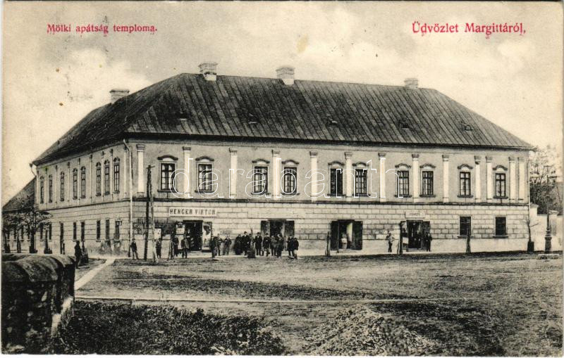 1906 Margitta, Marghita; Möki apátság temploma, Henger Viktor és Rosenberg üzlete. Henger Victor kiadása / church of the abbey, shops