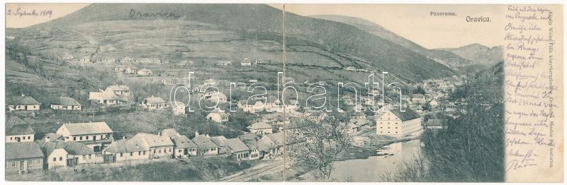 1909 Oravicabánya, Oravica, Oravicza, Oravita; Panorama / látkép. Weisz Félix kiadása. 2-részes kihajtható panorámalap / general view. 2-tiled folding panoramacard (r)