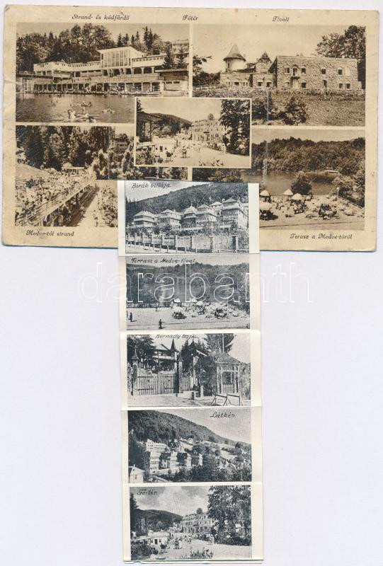 1941 Szováta-fürdő, Baile Sovata; Strand- és kádfürdő, Fő tér, Tivoli, Medve-tó strand, Terasz. leporellólap 10 képpel / spa, beach. leporellocard with 10 pictures (r)