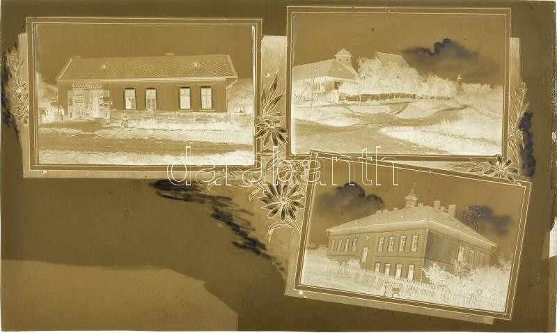Description: ~1900 Magyarszovát, Suatu; Unitárius és református templom, Boer László üzlete, állami iskola. A képeslap eredeti foto polimer kliséje! / churches, shop, school. Art Nouveau, floral - Original photo cliché (stereotype) of the postcard!