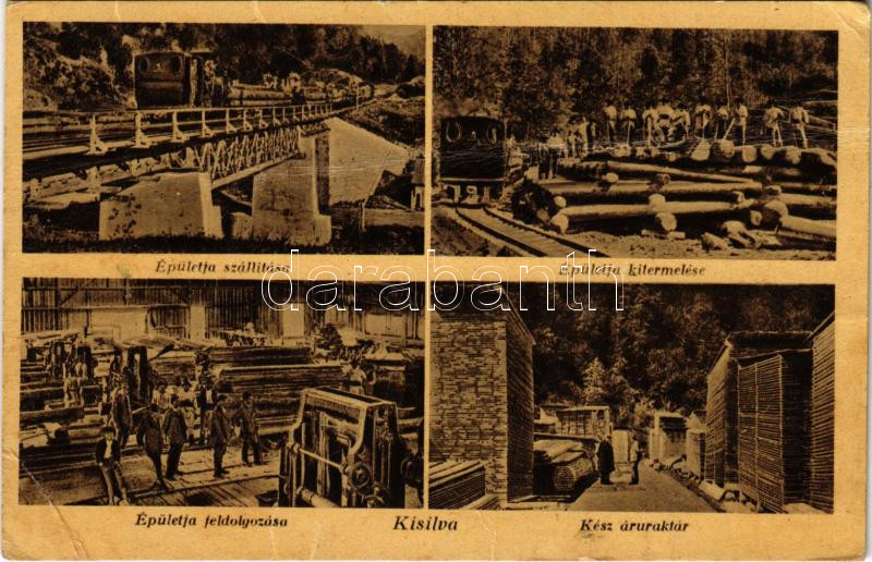 Kisilva, Ilva Mica; Épületfa szállítása, kitermelése, feldolgozása, kész áruraktár, iparvasút / the transportation, production and processing of lumber, warehouse, industrial railway, train (fa)