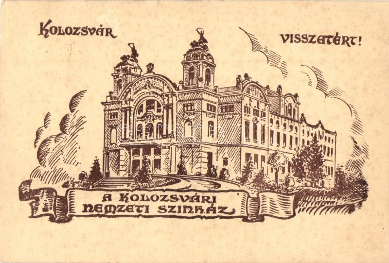 Kolozsvár, Cluj; Nemzeti színház, visszatért! irredenta / theatre (EK)