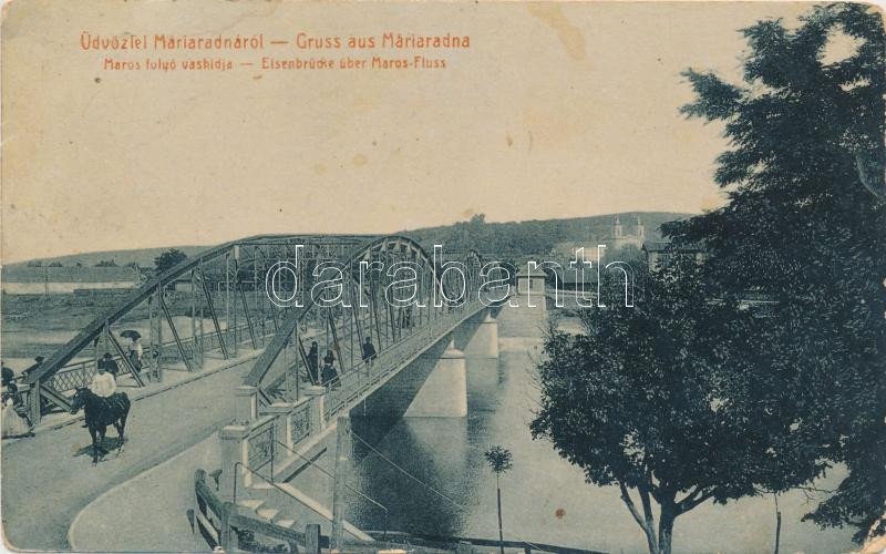 Máriaradna, Maros folyó vashídja, Csauscher József kiadása / river, bridge (EK)