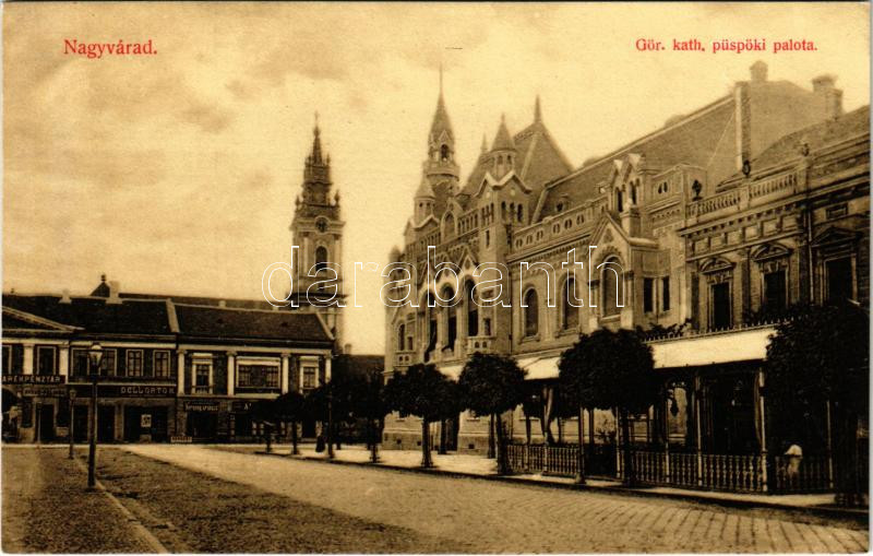 Nagyvárad, Oradea; Görögkatolikus püspöki palota, Dell'Orto K. üz... https://www.darabanth.com/en/429-Online-auction/429.0/Postcards/Transylvania~1500006/Nagyvarad-Oradea-Gorogkatolikus-puspoki-palota-DellOrto-K-uzlete-Takarekpenztar-SebC5~II2752084