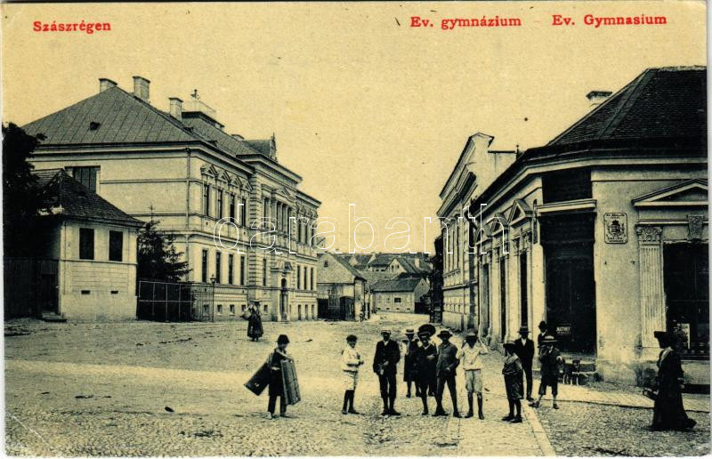 Szászrégen, Reghin; Evangélikus gimnázium, M. kir. dohány és só árulás... https://www.darabanth.com/en/429-Online-auction/429.0/Postcards/Transylvania~1500006/Szaszregen-Reghin-Evangelikus-gimnazium-M-kir-dohany-es-so-arulas-uzlet-Rudolf-Burgh~II2753045