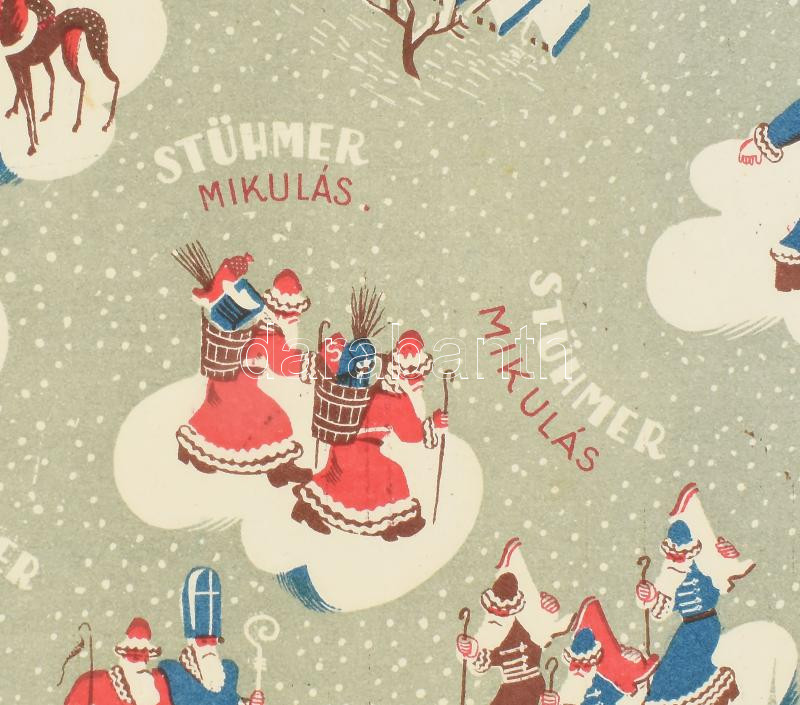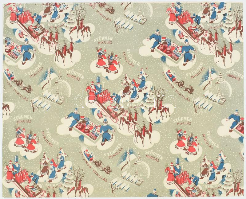 cca 1930 Stühmer Mikulás art deco stílusú édesség csomagolópapír, hajtásnyommal, jó állapotban, 35×43 cm
