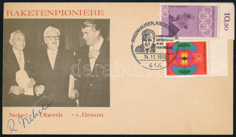 1969 Rudolf Nebel (1894-1978) német rakétakutató és az űrkutatás egyik... https://www.darabanth.com/en/43-Major-auction/43.1/Art-sculptures-paper-and-other-collectibles/Autographs~17556/1969-Rudolf-Nebel-1894-1978-nemet-raketakutato-es-az-urkutatas-egyik-uttorojenek-alair~II3207507