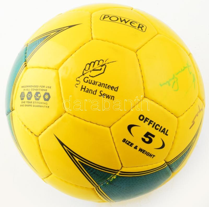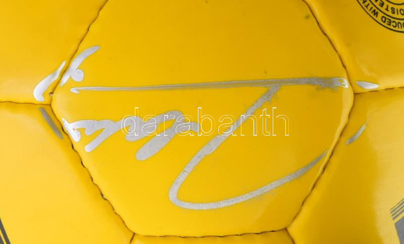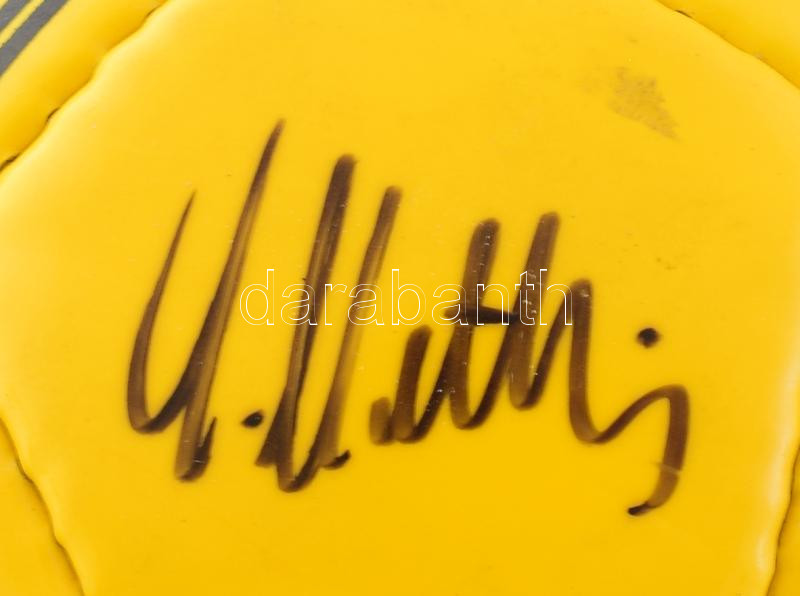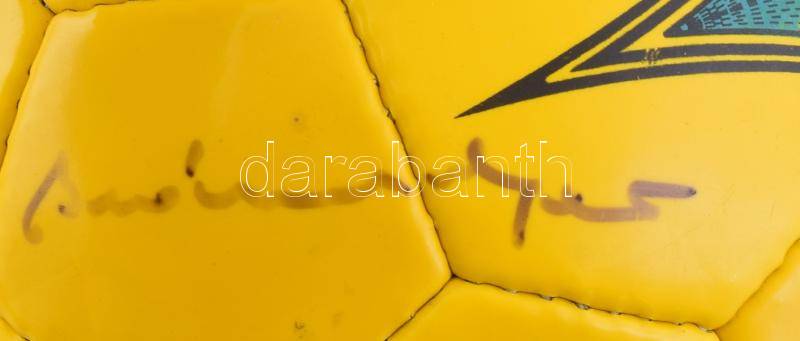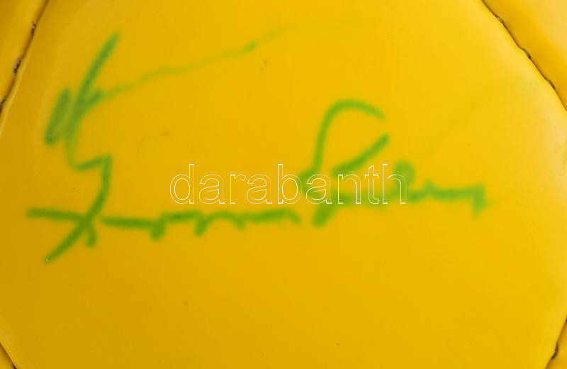Hivatalos football labda legendás játékosok: Grocsics Gyula, Buzánszky Jenő, az Aranycsapat tagjai és európai aranylabdások: Lothar Matthäus, Michele Platini, Ruud Gullit, Zico autográf aláírásával ca 2000 / Official football ball with autographs of legendary players: Gyula Grocsics, Jenő Buzánszky, members of the Golden Team and European gold medalists: Lothar Matthäus, Michel Platini, Ruud Gullit, Zico