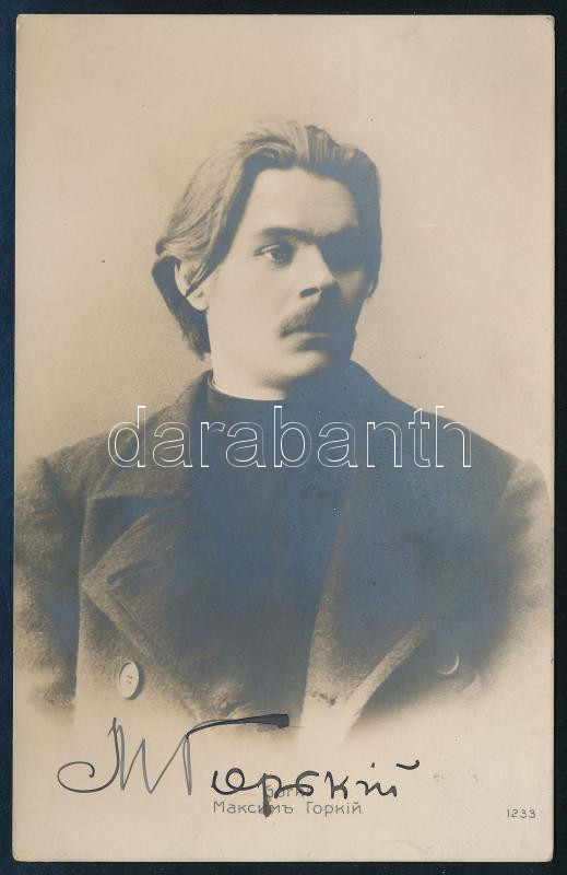 cca 1910 Maxim Gorkij (1868-1936). világhírű orosz-szovjet író autográ... https://www.darabanth.com/en/43-Major-auction/43.1/Art-sculptures-paper-and-other-collectibles/Autographs~17556/cca-1910-Maxim-Gorkij-1868-1936-vilaghiru-orosz-szovjet-iro-autograf-alairasa-ot-abrC3~II3230609