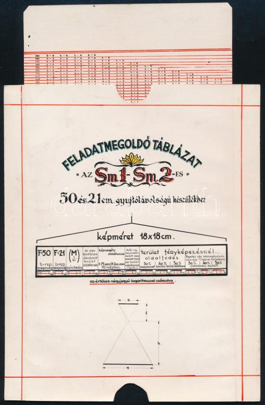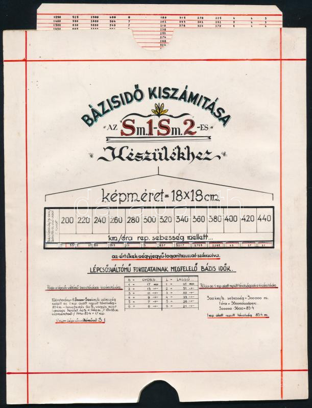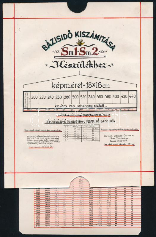 cca 1920 Légifénykép készítéshez mozgatható táblázat. Kétoldalas. Bázisidő kiszámítása az Sm 1. - Sm. 2. készülékekhez. 15x16 cm