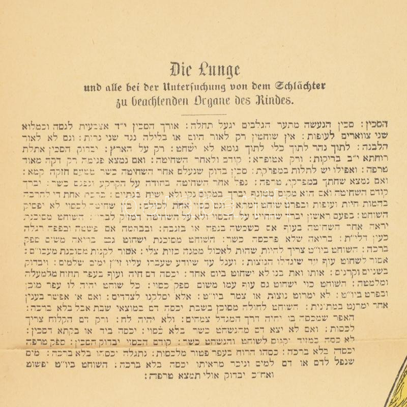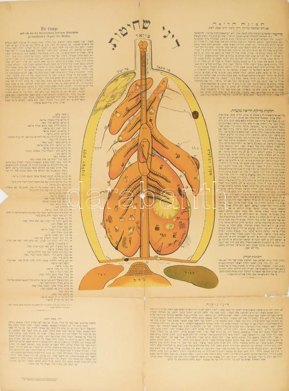 A tüdő kóser vágását szemléltető nagyméretű ábra leírással, hentesek s...