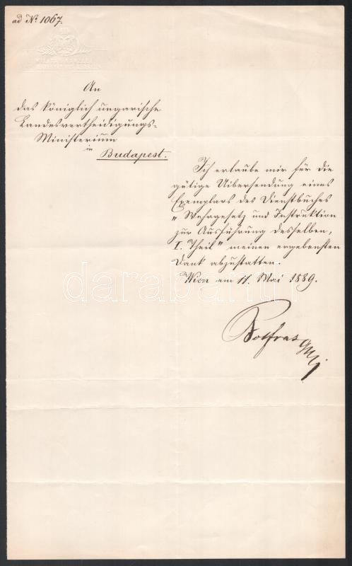 1889 Bécs (Wien), Arthur von Bolfras (1838-1922) osztrák vezérezredes,... https://www.darabanth.com/en/43-Major-auction/43.1/Art-sculptures-paper-and-other-collectibles/Military~17892/1889-Becs-Wien-Arthur-von-Bolfras-1838-1922-osztrak-vezerezredes-Ofelsege-Katonai-Irodaj~II3227135