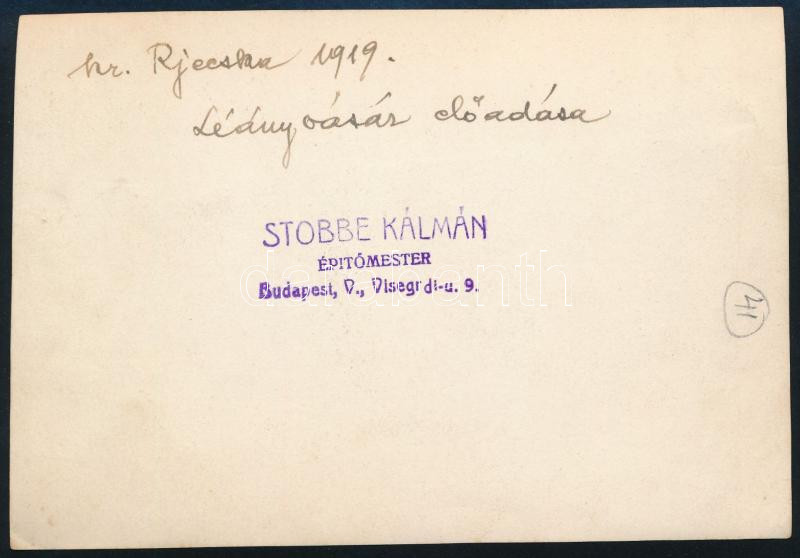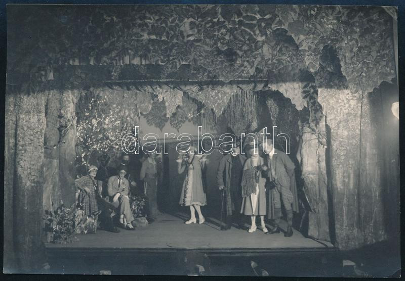 1919 Stobbe Kálmán (1883-1936) építőmester, díszlettervező, labdarúgó, a magyar válogatott edzője pecséttel jelzett fotója, a Krasznaja Recska, Rjecska, Krasnaia- Rjetschka (Vladivostok) hadifogoly tárborban tartott magyar színházi előadás (Leányvásár);. feliratozott / Hungarian play in the Krasnaia- Rjetschka (Vladivostok) Japanese-Russian POW (prisoner of war) camp. photo 15x11 cm