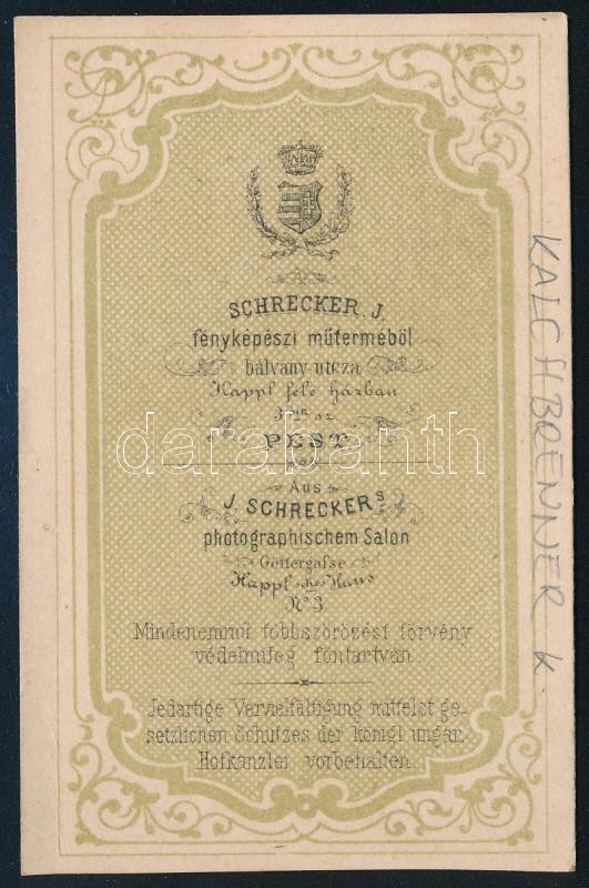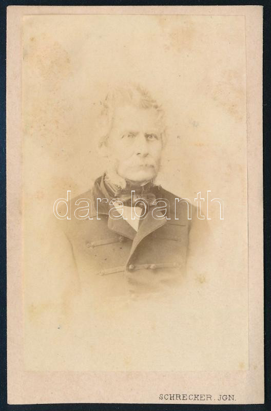 Description: 1865 Kalchbrenner Károly (1807-1886) híres botanikus, mikológus, evangélikus lelkész, az MTA rendes tagja, keményhátú fotó Schrecker Ignác (1834-1888) pesti műterméből, 10×6 cm