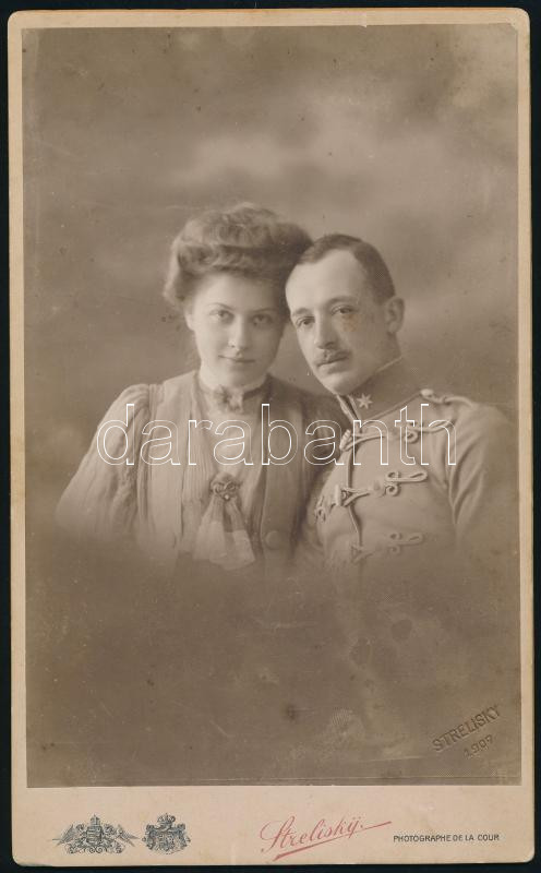 1907 Windisch-Graetz Lajos és felesége gróf Széchenyi Mária, keményhátú fotó Strelisky műterméből, hátoldalon feliratozva, 21×13 cm