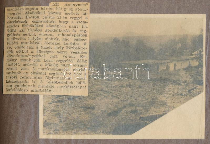 1923 Hajós, a ,,221 Anonymus" cserkészcsapat fotóalbuma, benne 10 db vintage fotó a csapatról és tagjairól, továbbá egy beragasztott újsághír is a csapatról, a címoldalon egy litográfia, azon szerepel a Hajós felirat, amely lehet hogy a szerzőre és nem a településre utal, album mérete 13,5x20,5 cm