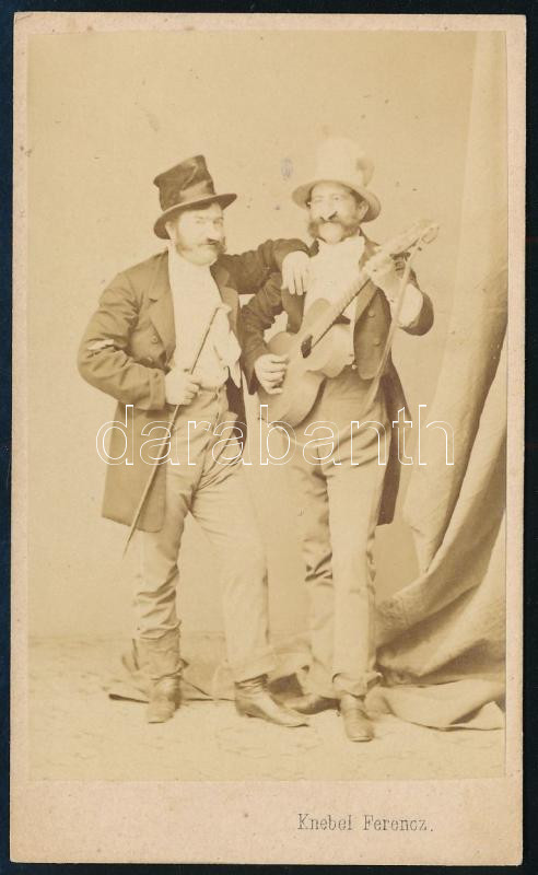 cca 1865 Férfiak vicces jelenetben, keményhátú fotó Knebel Ferenc szom...