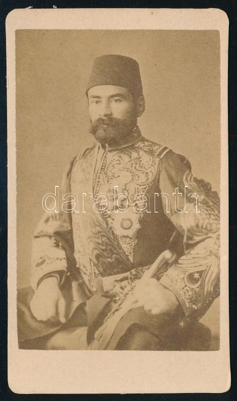 cca 1870-1880 Ahmed Muhtar pasa (1832-1919), az Oszmán Birodalom tábornoka és nagyvezíre, a krími háború (1853-56) és az orosz-török háború (1877-78) résztvevője; a nagyvezíri rangot 72 éves korában kapta meg, elismerésképpen régi háborús hőstetteiért, és mindössze 3 hónapig, 1912. júliusától október végéig viselte; vizitkártya, 10x6 cm / cca 1870-1880 Ahmed Muhtar Pasha (1832-1919), field marshal and Grand Vizier of the Ottoman Empire; he served in the Crimean War (1853-56) and the Russo-Turkish War (1877-78); he was appointed as Grand Vizier at age 72, as an acknowledgement of his prestige as an old military hero, and only held the rank for 3 months, from July 1912 until the end of October; CDV photo, 10x6 cm