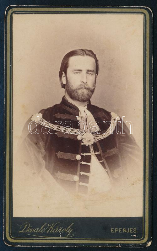 cca 1870-1880 Gundelfinger Gyula (1833-1894) festÅ‘művész, Szinyei Merse Pál (1845-1920) unokatestvére dÃszmagyarban, vizitkártya Divald Károly eperjesi műtermébÅ‘l, minimális felületi hibákkal, hátoldalán ragasztással, 10,5x6,5 cm
