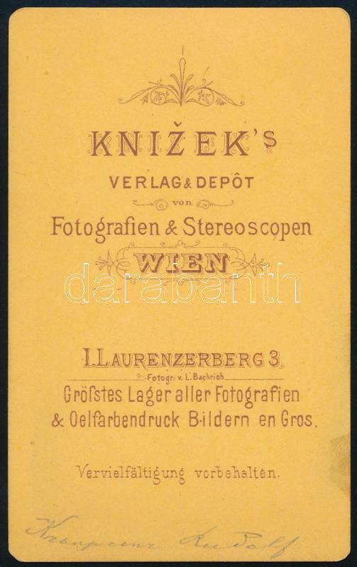 cca 1870-75 Rudolf (1858-1889) osztrák-magyar trónörökös gyerekkori portréja, keményhátú fotó, Knizek/Bécs kiadása, 10,5×6,5 cm / cca 1870-75 Portrait of crown prince/Kronprinz Rudolf, vintage photo, Knizek Wien/Vienna, 10,5×6,5 cm