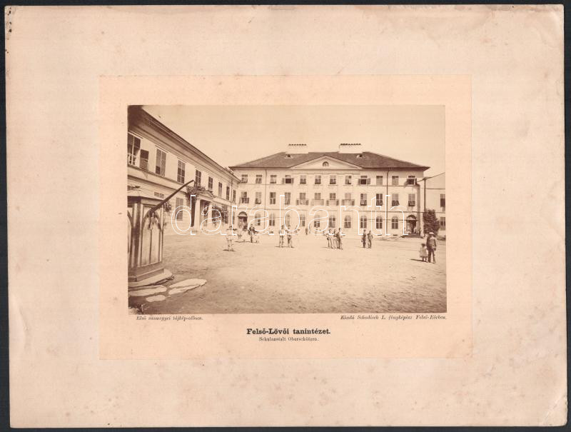 cca 1895 A felső-lövői tanintézet, Burgenland, kartonra kasírozott fot...