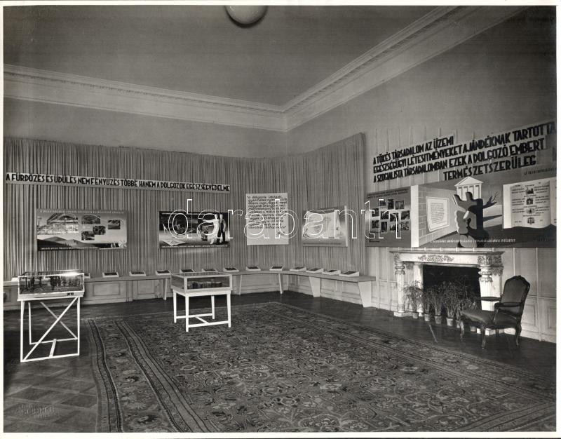 Description: cca 1951 Seidner Zoltán felvételei az egészségvédelemről szóló budapesti propaganda kiállítás anyagáról, a professzionális felvételeknek köszönhetően a szövegek is jól olvashatók, hidegpecséttel jelzett 6 db vintage fotó, ezüst zselatinos fotópapíron, 24x30 cm