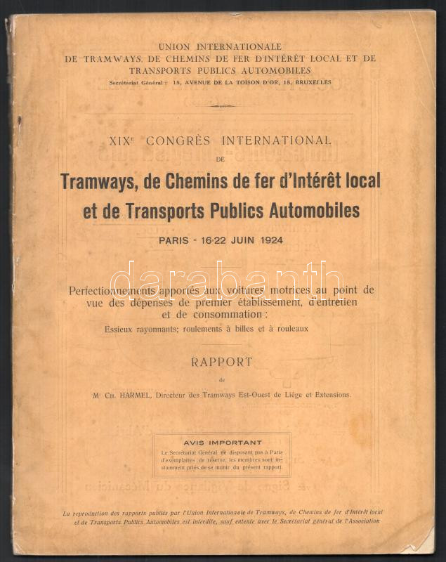 1924 XIX. Congrés International de Tramways, de Chemins de fer d'... https://www.darabanth.com/en/43-Major-auction/43.1/Art-sculptures-paper-and-other-collectibles/Printed-Materials~17566/1924-XIX-Congres-International-de-Tramways-de-Chemins-de-fer-dInteret-local-et-de-Transports-Pu~II3233834