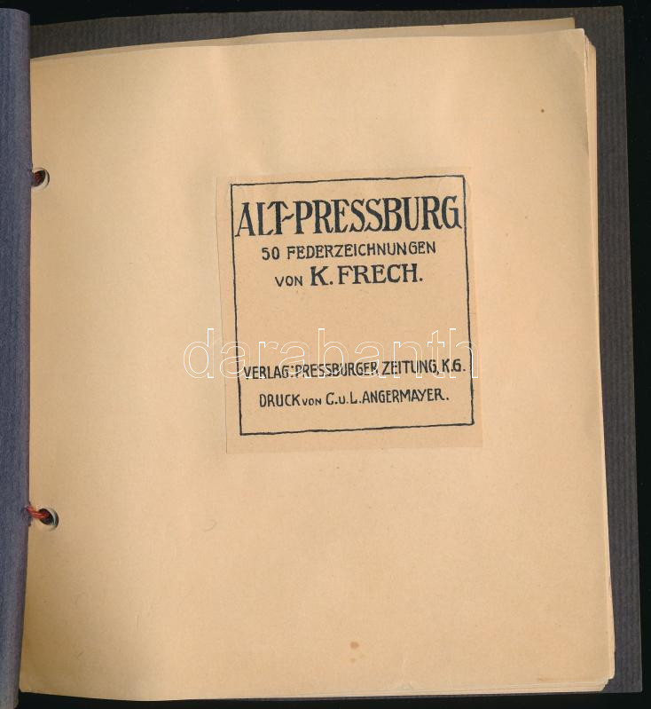 1926 Alt Pressburg (Pozsony, Felvidék), K. Frech 50 db tollrajza, nyom... https://www.darabanth.com/en/43-Major-auction/43.1/Art-sculptures-paper-and-other-collectibles/Printed-Materials~17566/1926-Alt-Pressburg-Pozsony-Felvidek-K-Frech-50-db-tollrajza-nyomat-egyenkent-beragasztva-k~II3233417